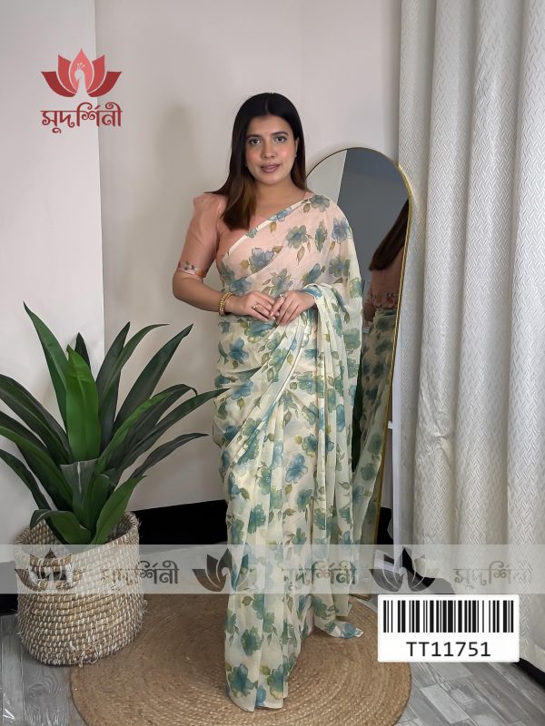 এই জর্জেট শাড়িটি নরম ও হালকা ফেব্রিকের তৈরি। সফট কালার টোন ও মিনিমাল ফিনিশিং শাড়িটিকে করেছে আধুনিক ও রুচিশীল, যা সহজেই যেকোনো বয়সের নারীর স্টাইলে মানানসই। হালকা ওজনের কারণে সারাদিন পরলেও অস্বস্তি হয় না এবং গরম আবহাওয়াতেও এটি খুবই আরামদায়ক।