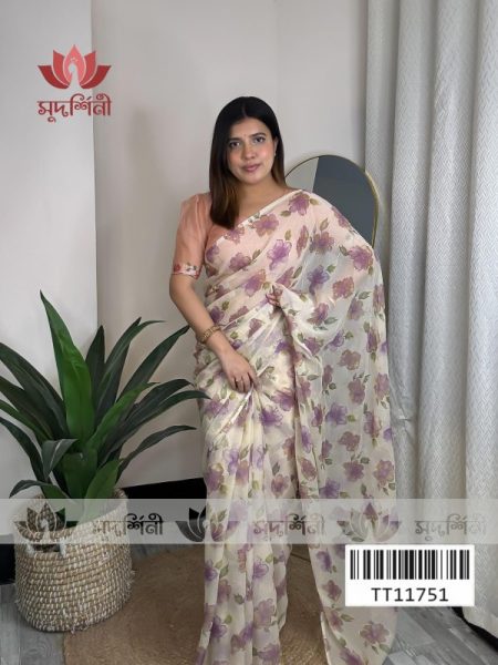 এই জর্জেট শাড়িটি নরম ও হালকা ফেব্রিকের তৈরি। সফট কালার টোন ও মিনিমাল ফিনিশিং শাড়িটিকে করেছে আধুনিক ও রুচিশীল, যা সহজেই যেকোনো বয়সের নারীর স্টাইলে মানানসই। হালকা ওজনের কারণে সারাদিন পরলেও অস্বস্তি হয় না এবং গরম আবহাওয়াতেও এটি খুবই আরামদায়ক।